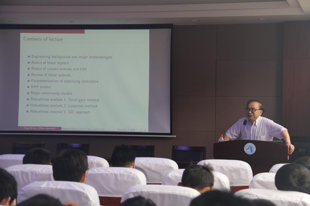 2018年5月2日至4日,日本千叶大学刘康志教授来足球官网为研究生授课。《鲁棒与最优控制》是由刘康志教授与足球官网何勇教授共同讲授的研究生课程。课程内刘康志教授分三场为研究生授课。