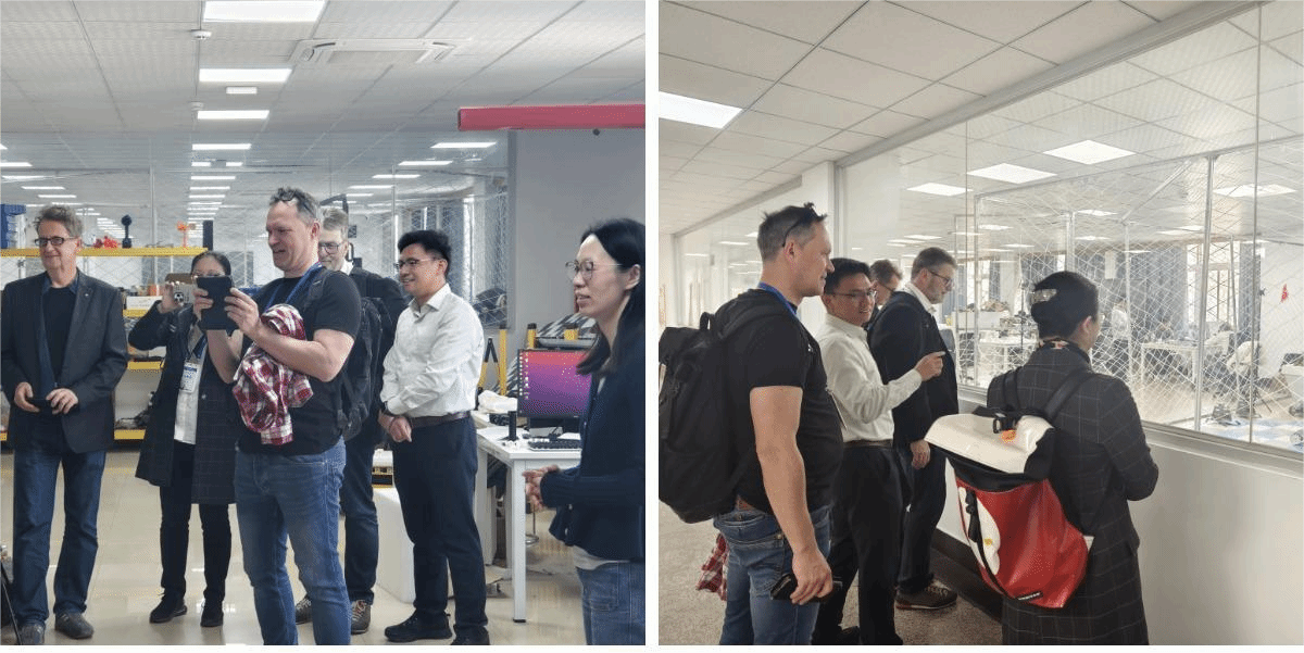 德方代表团一行首先参观了足球官网实验室。在足球官网自主研发的“海百合”机器人展示环节,机器人现场弹奏了一曲,动作精准、音律流畅,德方代表们惊叹不已,纷纷驻足拍摄并表示高度赞赏。